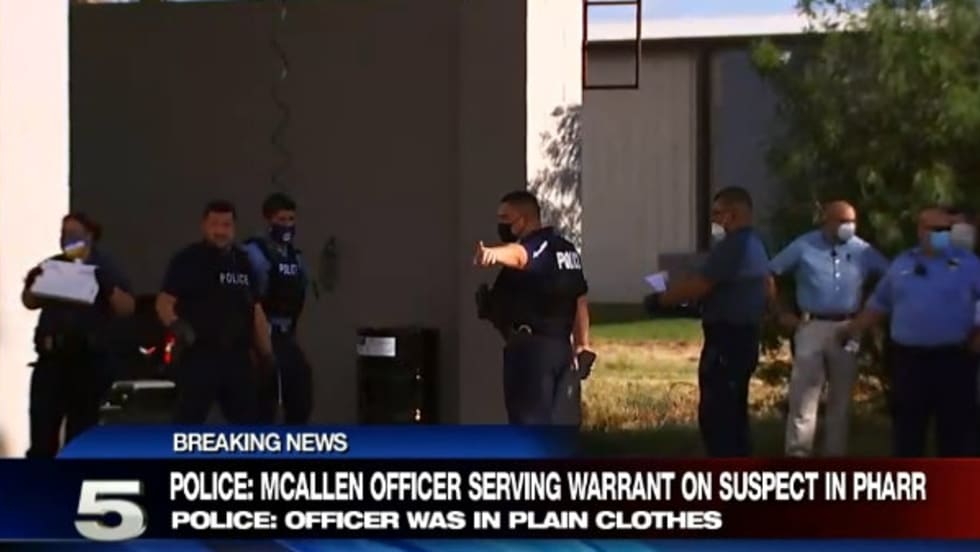 An officer with the McAllen (TX) Police Department was struck, pinned, and then dragged by a suspect in a vehicle as another officer opened fire on the assailant.