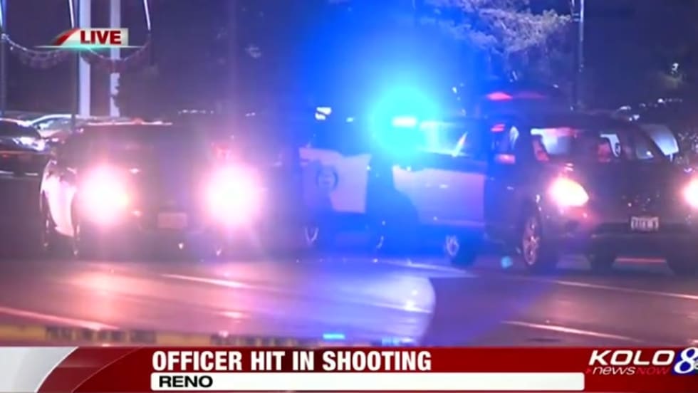 A Reno, NV, officer was wounded and a suspect was killed in a shooting after a traffic stop Thursday night. Police continue to look for a suspect on the run.