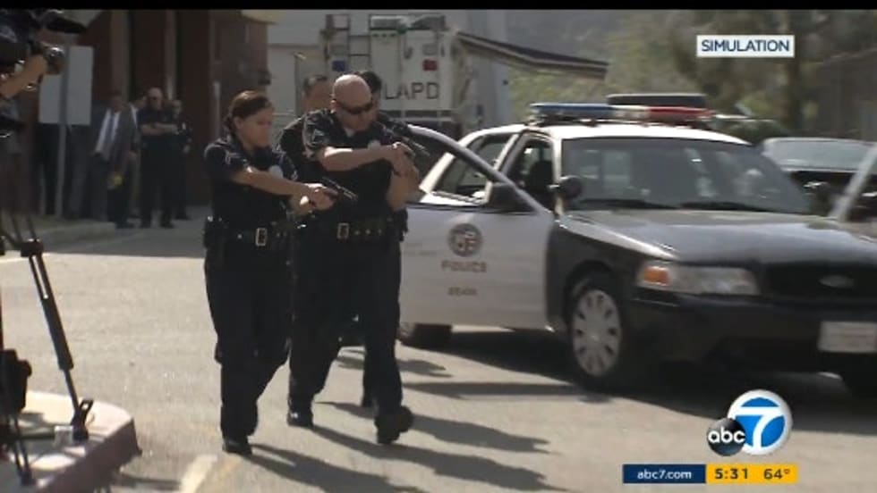 LAPD tactics are under scrutiny as the department reviews last year's rise in crime and how officers responded. On Wednesday, members of the media had a front-row view of training at the Davis Academy in Granada Hills, CA.