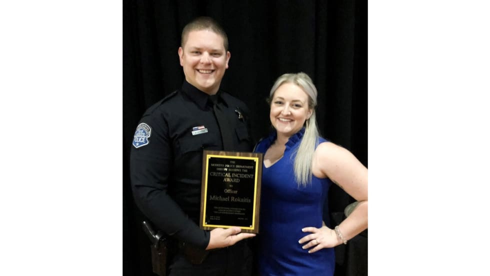 Police Chief Brandon Gillespie said in the video that Officer Michael “Mikey” Rokaitis has undergone seven surgeries since the shooting, including one to have part of his right leg amputated. He spent 12 days in the ICU but is now in stable condition.