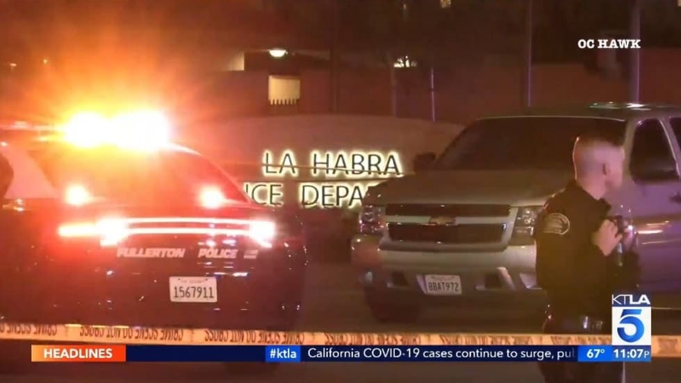 Police responded to the front entrance of the police station, regarding a road rage incident in the area of the 5 and 57 Freeways at around 7:04 p.m., the La Habra Police Department said in a news release Saturday.