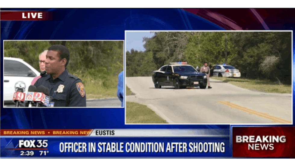 A police officer was shot and wounded in Eustis, FL, early Thursday, and authorities continue to search for the suspect, or possible suspects.