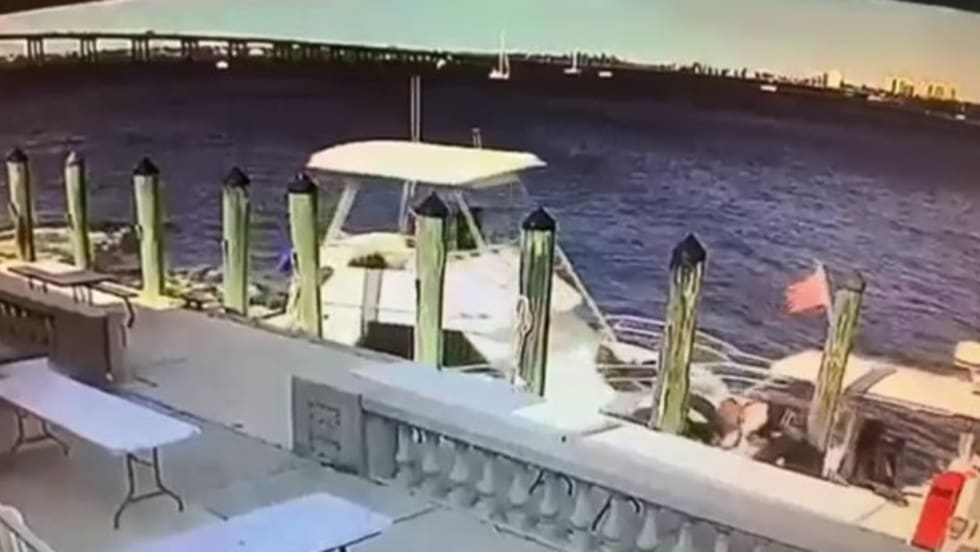 A marine officer with the Fort Meyers (FL) Police Department leaped from his patrol boat to the dock just seconds before another vessel crashed into it.