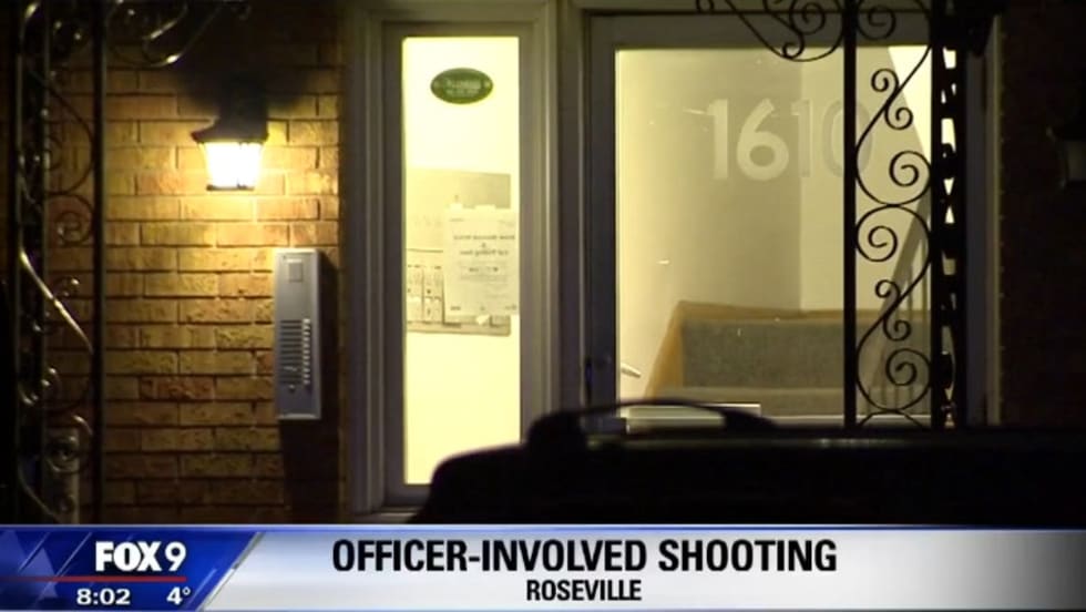Police in Roseville, MN, shot and killed a man they found hiding in a closet after he stabbed a police dog Wednesday night.