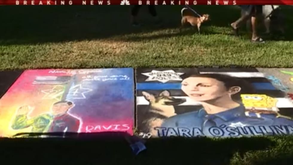 Attendees at the 'Chalk It Up' art festival in Sacramento were given the opportunity to remember two Central Valley police officers who were killed in the line of duty earlier this year.