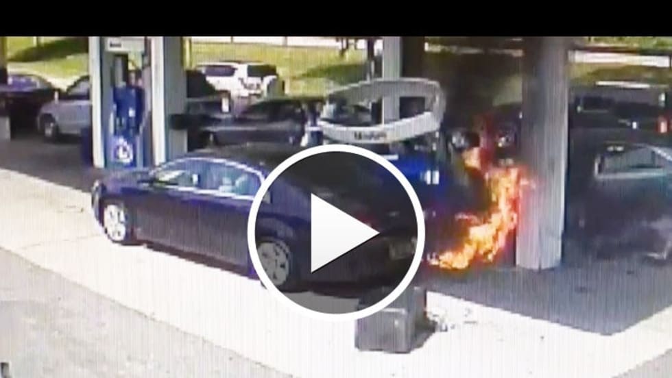 Vescio turned just as a Toyota Camry slammed into an Acura on the other side of the pump,, and then into the pump itself. The pump fell on top of Vescio, who was injured as he was knocked to the ground.