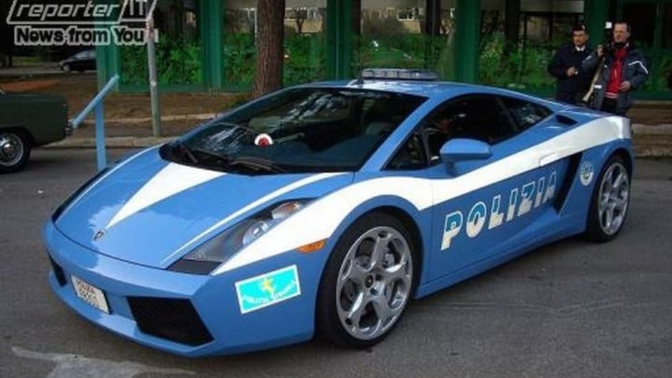 Today, a bandaged and bruised police driver may have had a tough time explaining how he managed to write off one of the force's prized Lamborghinis when he rammed it so hard into a line of parked cars that one of the stationary vehicles ended up on the police car's roof.