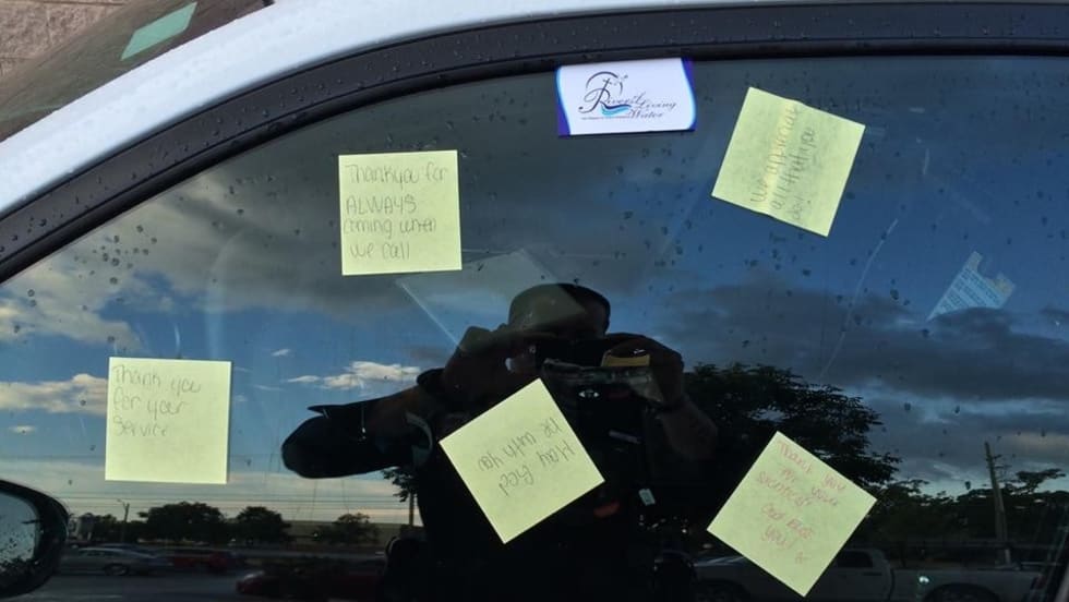After working a secondary employment job at Best Buy, Officer J. Wall found people leaving several thank-you notes on his patrol vehicle.