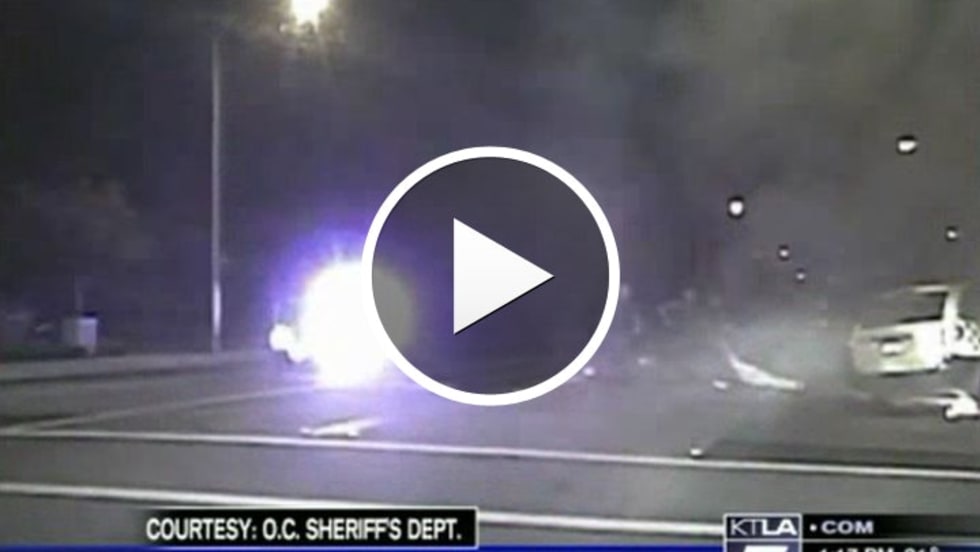 An Orange County (Calif.) Sheriff's deputy used his baton to shatter the window of a burning vehicle so he could pull a man out who had suffered a medical emergency.