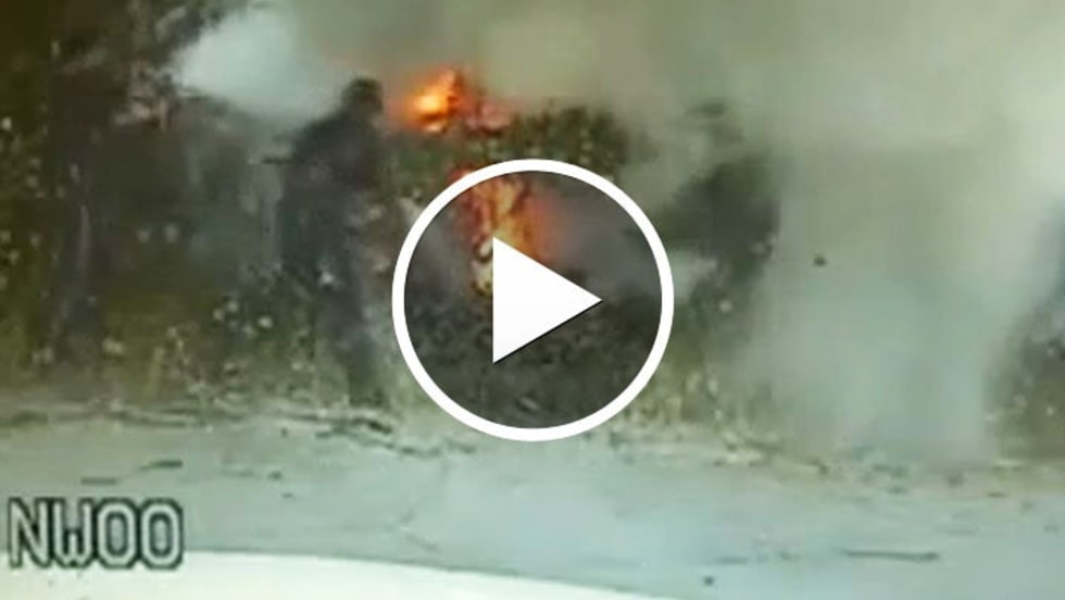 An Ohio State Highway Patrol trooper is being credited with getting an 86-year-old man out of his van shortly before it caught fire and exploded.