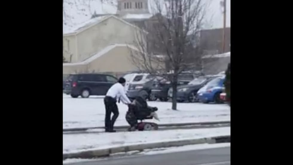 A woman captured a Hamilton (OH) Police Department officer's good deed on camera Thursday and posted it on Facebook. Officer Mike Thacker was seen pushing a resident in his wheelchair through the snow after the wheelchair's battery died.