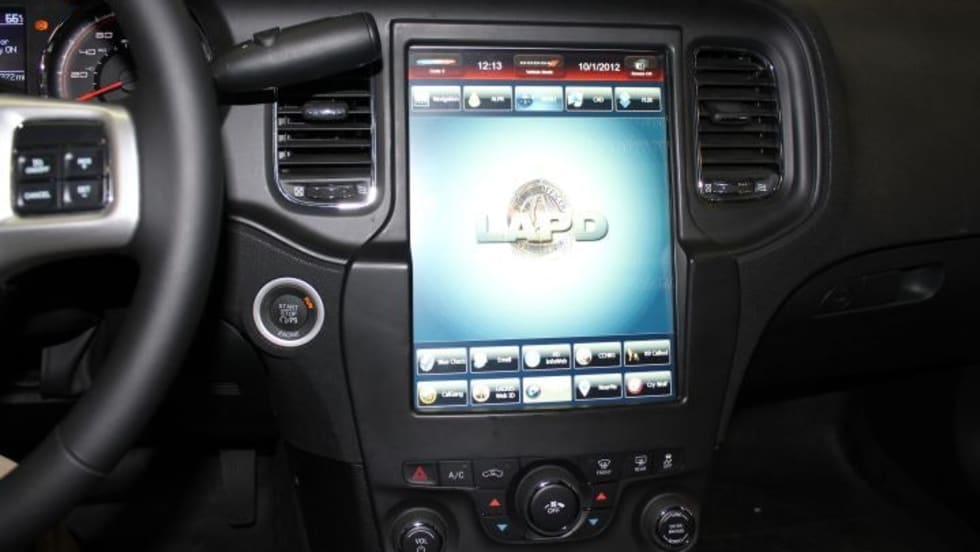 Chrysler has installed 12.1-inch screens into two Dodge Charger patrol cars for the Los Angeles Police Department that significantly reduce the amount of police equipment in the cockpit.