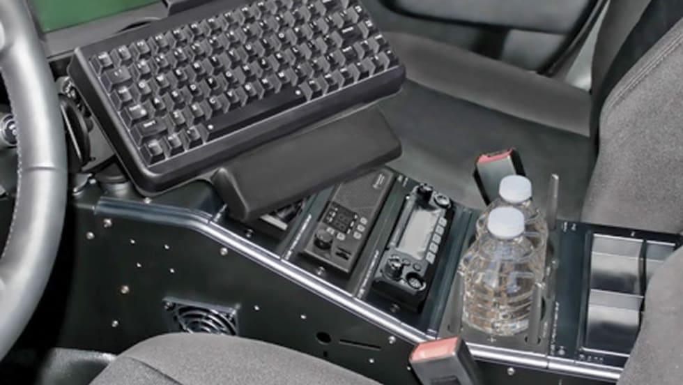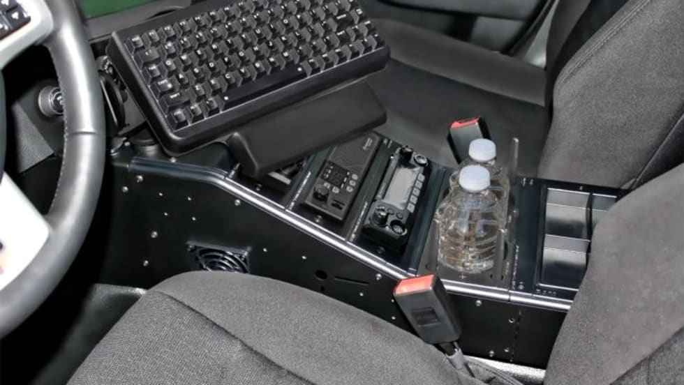 The new RAM console for the Dodge Charger police package requires no leg kit or top plate, making it almost 15 pounds lighter than its predecessor, yet still just as tough. Custom fit for the Charger and available as a completed kit or as separate components.