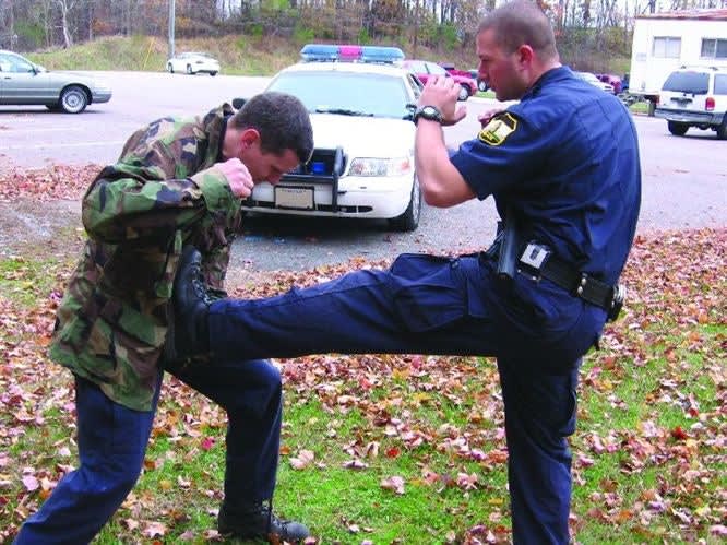 A swift kick can do wonders in a violent confrontation, but you have to know how to deliver it. Law enforcement agencies equip and train officers with pistols, rifles, shotguns, batons, OC, TASERs, canines, horses, basllistic shields, battering rams, emplty hand self defense, and countless other potentially dangerous law enforcement tools, but may be hesistant when an officer properly and justifiably uses kicks for self-defense or to subdue a suspect. The U.S. Supreme Court held in Graham v. Connor that the reasonableness of an officer's actions must be judged by the circumstances at the time the force is used. It did not restrict of limit the tactics that an officer can employ.