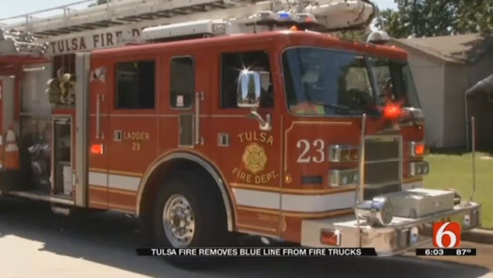The Tulsa (OK) Fire Department is removing blue stripes from its fire trucks because the chief thinks the symbols of law enforcement support may send the wrong message to some people.
