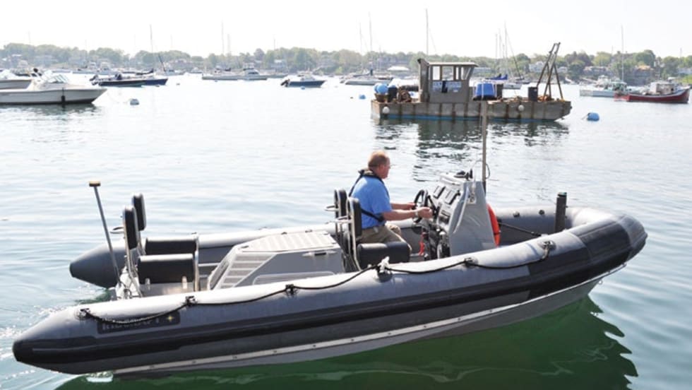 Brunswick Commercial and Government Products' (BCGP) 21-foot Guardian Boston Whaler features foam cored construction and the Whaler squared bow to facilitate boarding and foam cored construction.