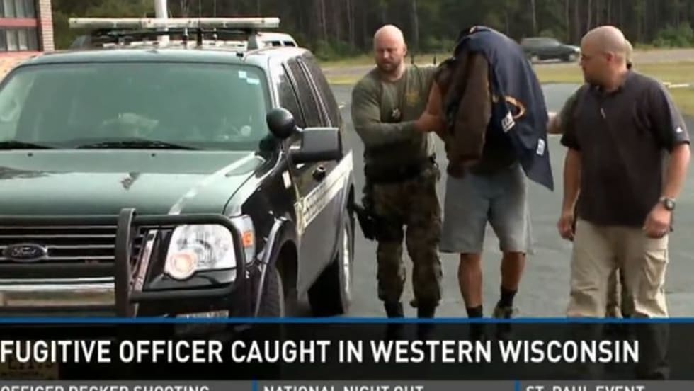A manhunt for a Waupun (Wis.) Police officer that began early Monday morning in Green Lake County ended late Tuesday afternoon with the man's arrest in northwestern Wisconsin.