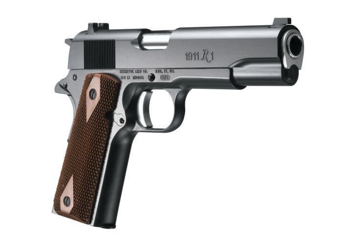 Read More →The Remington-branded 1911 R1 is an A1 variant of the 1911 with modern upgrades. Like the original 1911, the 1911 R1 has a flat mainspring housing, short trigger and double-diamond, walnut grips.