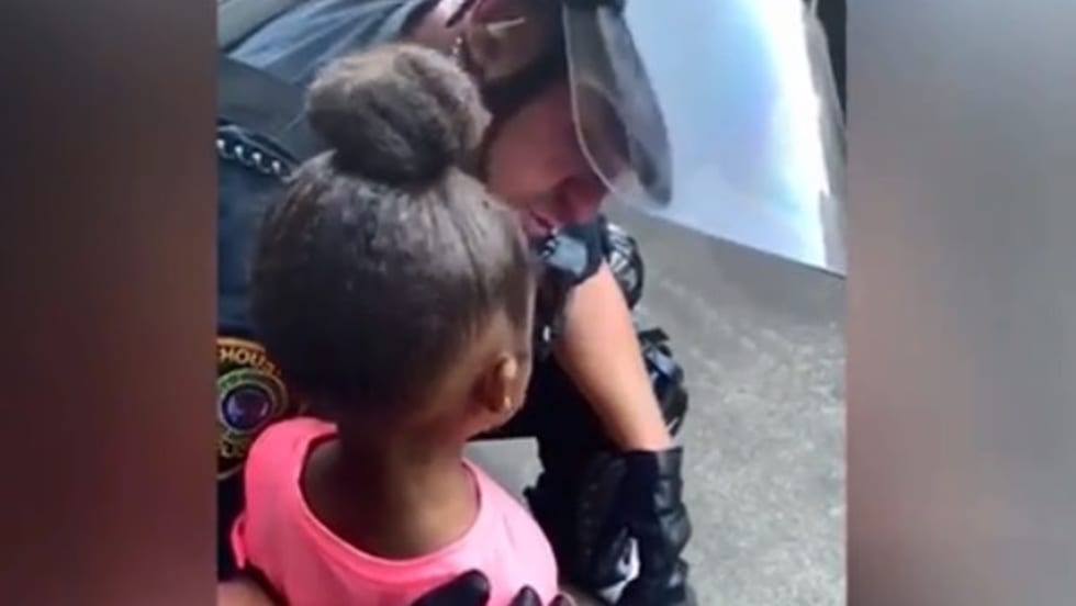 An officer with the Houston Police Department was captured on cell phone video comforting a 5-year-old girl during a protest last week.