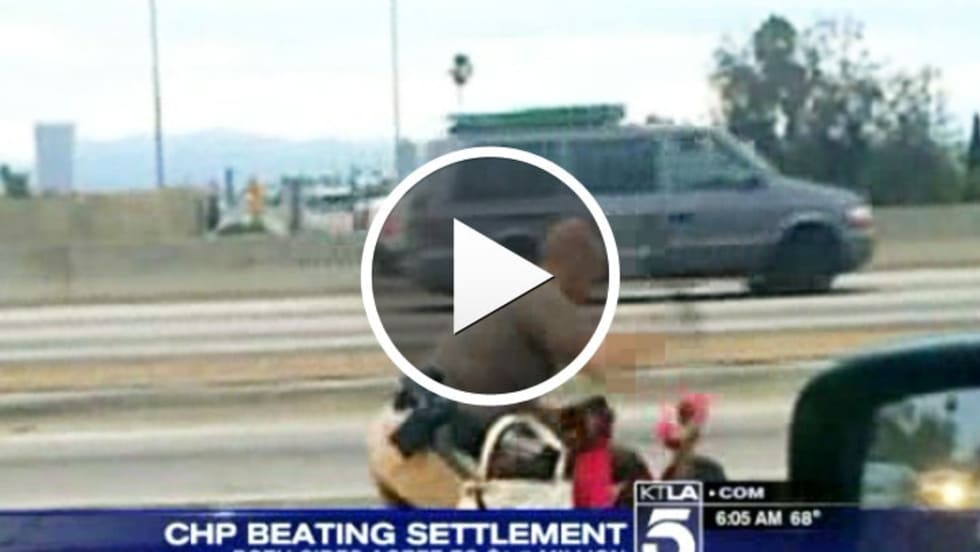 A woman punched repeatedly by a California Highway Patrol officer on the side of a freeway in an incident caught on video will receive $1.5 million under a settlement reached Wednesday night, and the officer has agreed to resign.