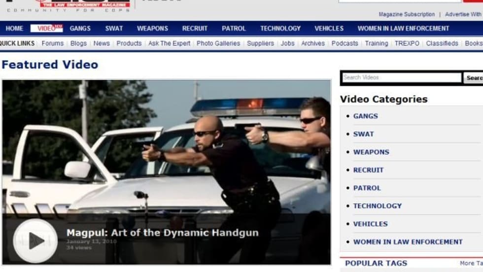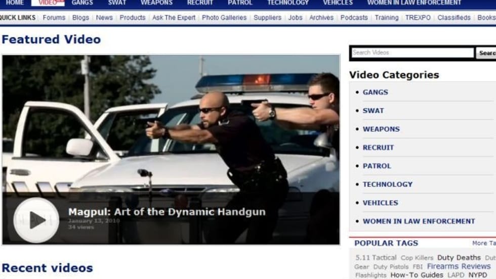 We've organized it the same way the main site is organized—into topic areas. So you'll be able to browse recent videos on the main page or look within topics such as Gangs, SWAT, Weapons, Recruit, Patrol, Technology, Vehicles, and Women in Law Enforcement.