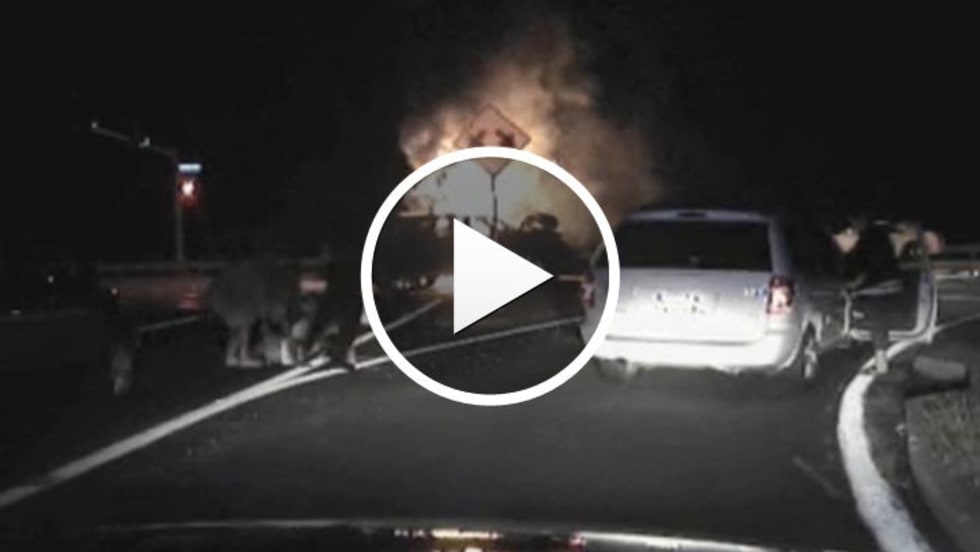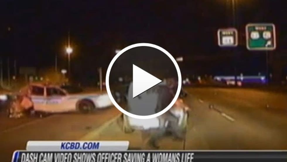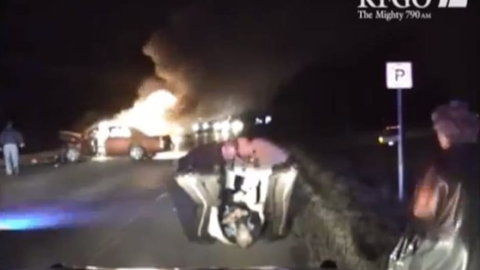 A Manchester (N.H.) Police officer's dashboard camera captured his rescue of an unconscious driver from a burning car with the help of bystanders. Officer Gerad Gonzalez helped drag an unconscious man to safety.