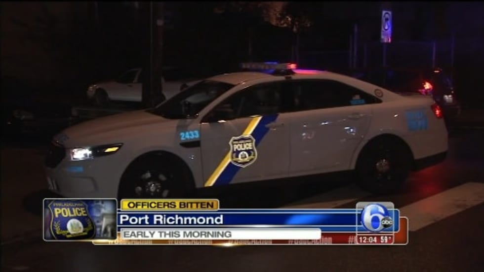 Police say a suspect who claimed to be HIV positive bit two Philadelphia officers during a violent struggle in Port Richmond.