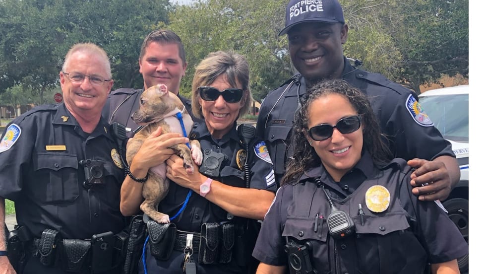 An officer with the Fort Pierce Police Department made the season's first hurricane rescue in the jurisdiction when he adopted a puppy that was too young to be placed in a shelter as Dorian loomed in the nearby Atlantic Ocean.