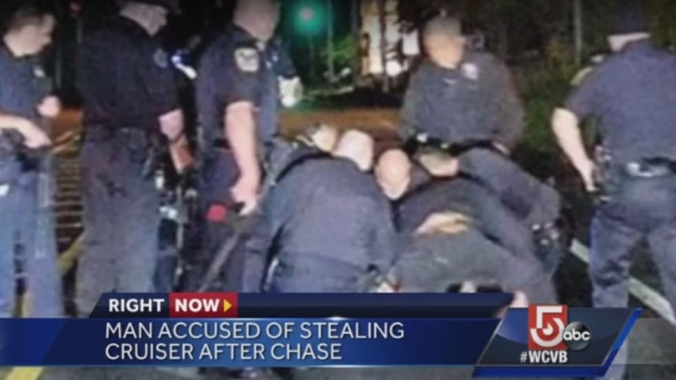 Hanson, MA, police said that a man who led them on a chase overnight was able to get into an officer's cruiser and prolong his crime spree.