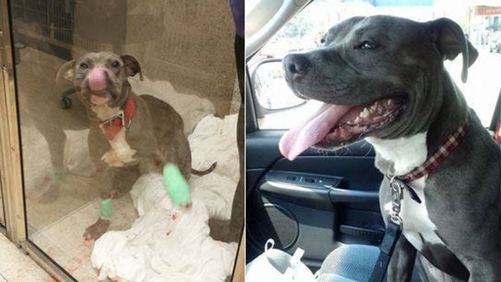 Cleveland police officers were called after witnesses reported a man was standing in the street beating a dog with a belt and a brick and then tried to choke him. But now an officer who responded plans to adopt the injured Pit Bull.