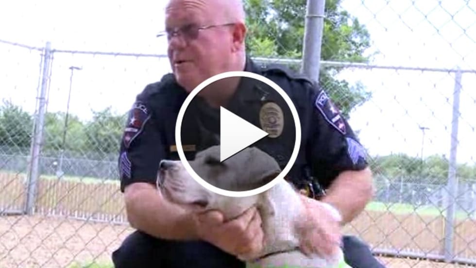 Two Arlington, Texas, police officers were recently flagged down while responding to another call, by some people claiming a pit bull that was out on their street was vicious. But, after a closer look, Sergeant Gary Carter noticed the pit was just a lost dog.