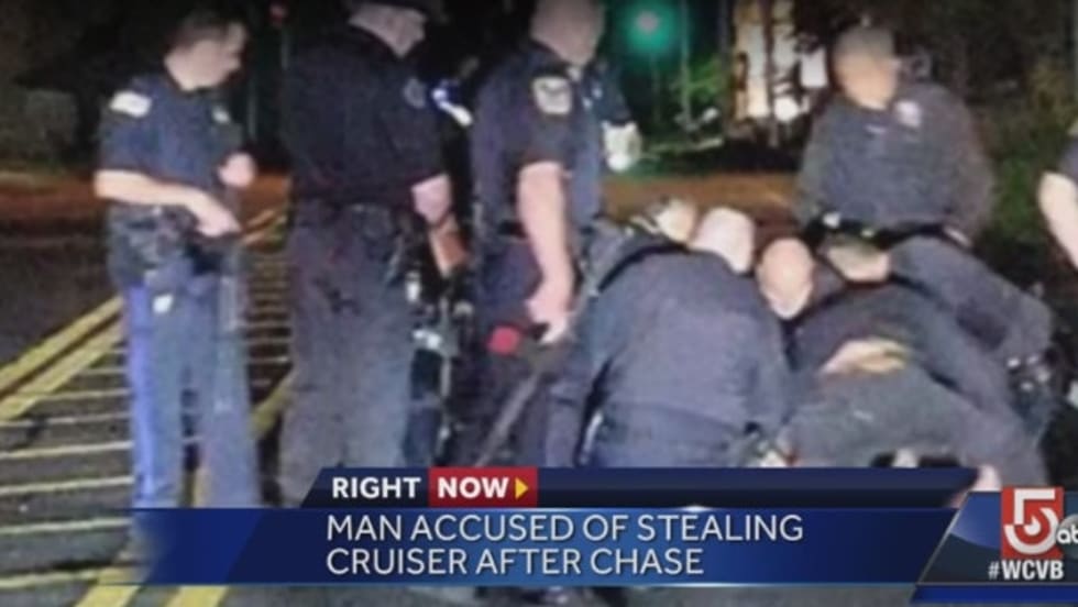 Hanson, MA, police said that a man who led them on a chase overnight was able to get into an officer's cruiser and prolong his crime spree.