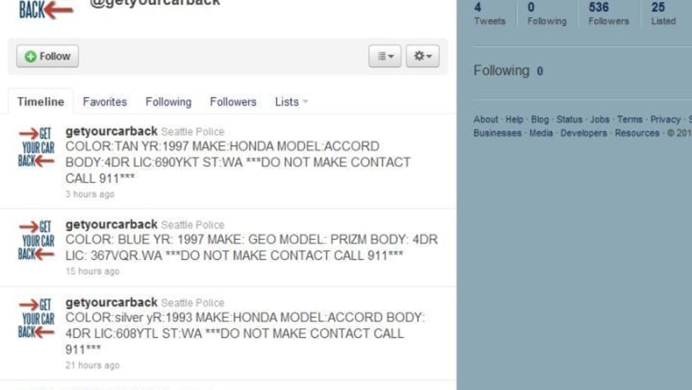 The department began tweeting vehicle descriptions on Wednesday, beginning with a brown 1984 Toyota Camry sedan. Each tweet includes the warning, "Do not make contact. Call 911."