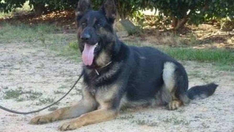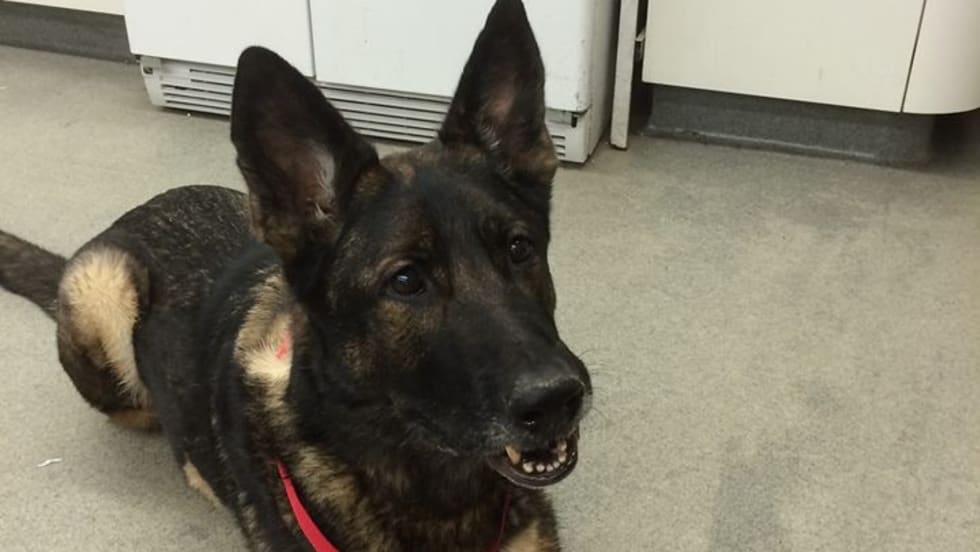 Cpl. Chris Larmore, had pulled over a vehicle, leaving the dog in the parked police car. Ike became “alerted” to something outside the car and jumped out of the window into traffic.