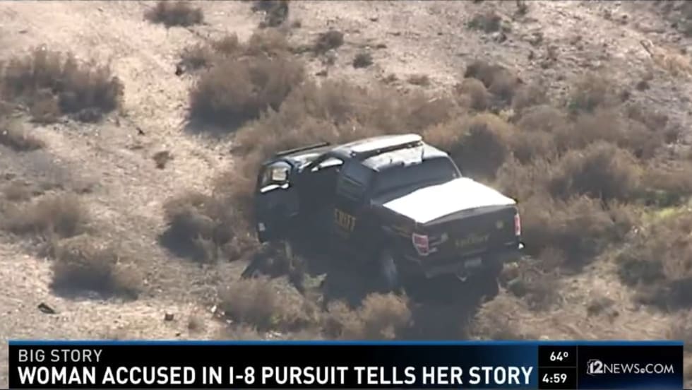 A naked Arizona woman is in custody after allegedly stealing a sheriff's vehicle and leading authorities on a 75-mile high-speed pursuit before crashing along Interstate 10.
