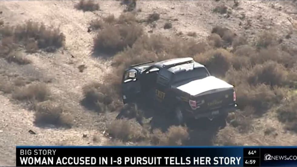 A naked Arizona woman is in custody after allegedly stealing a sheriff's vehicle and leading authorities on a 75-mile high-speed pursuit before crashing along Interstate 10.