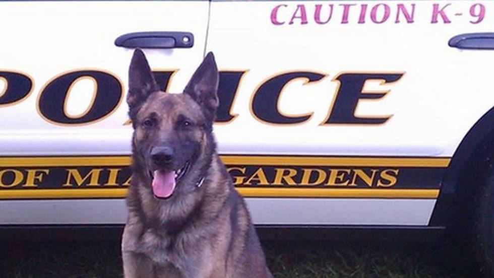 The Miami Gardens Police Department will mourn one of its K-9 officers Wednesday after the police dog was killed investigating a burglary. Max, a German shepherd, was mortally wounded when a glass panel fell on him.