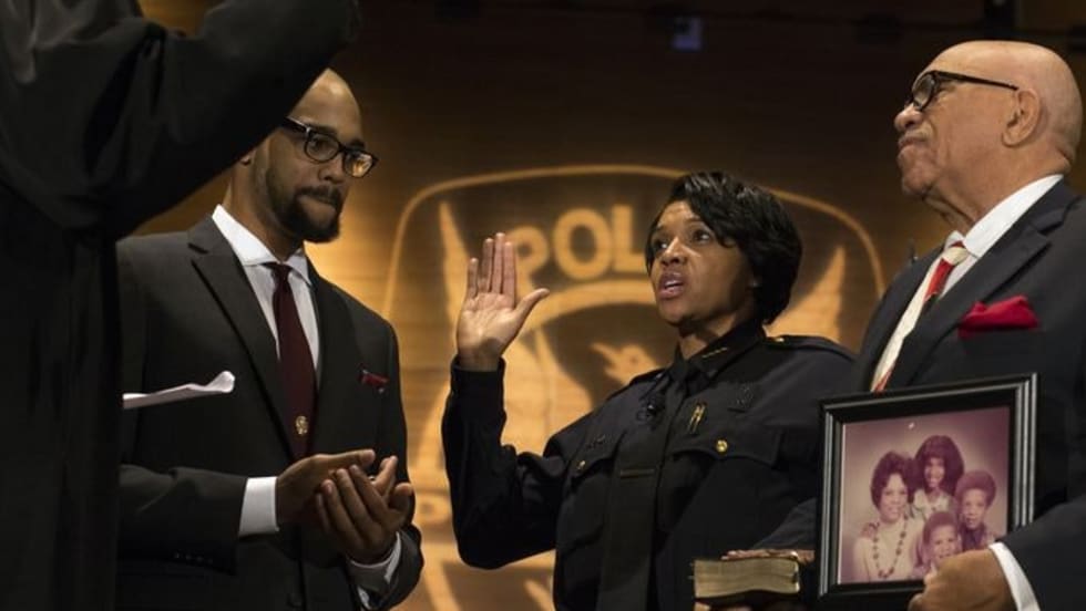 Erika Shields was sworn in as Atlanta's Chief of Police on Tuesday, making her the second woman to take the post in the department's history.