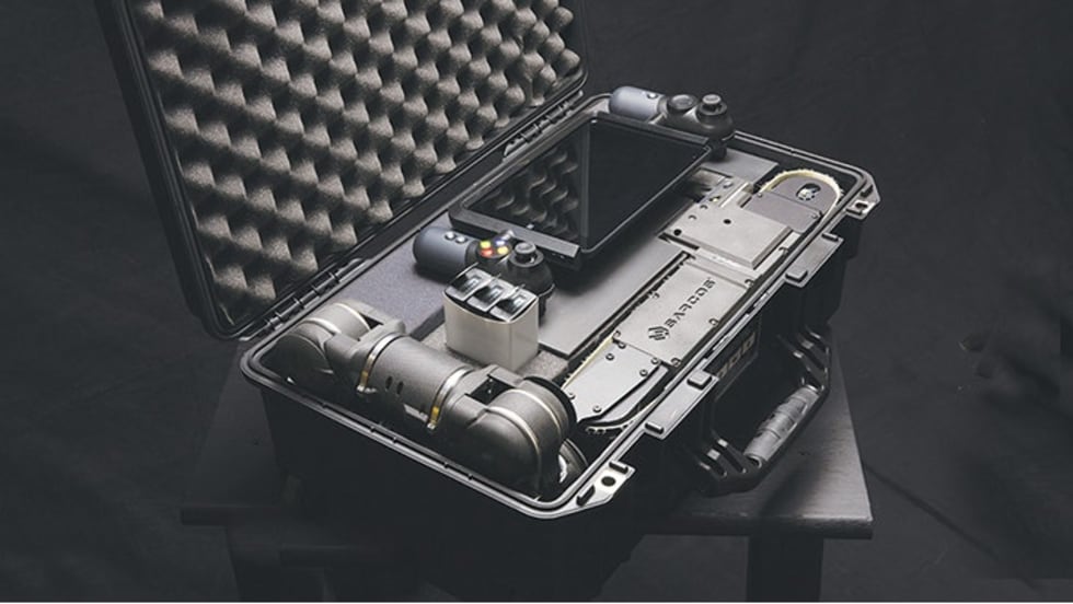 Sarcos Robotics' Guardian S is a multi-purpose, man-portable, wirelessly-controlled, unmanned ground vehicle that acts as a robotic mobile Internet of Things (IoT) platform to carry multiple sensor payloads.
