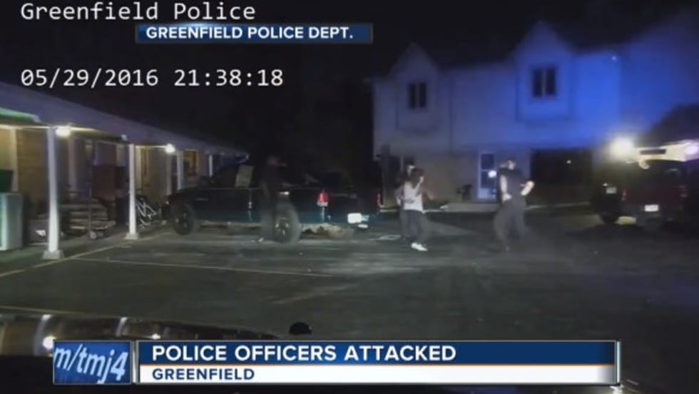 Police dashcam video has been released showing several police officers being attacked by a suspect in Greenfield, WI, on May 29. Two officers were injured so badly they were rushed to the hospital.