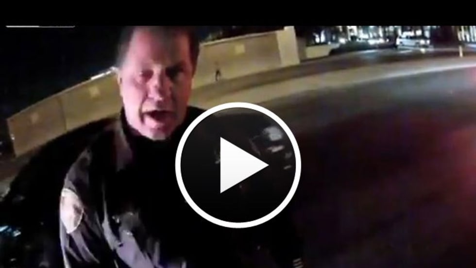 A Las Vegas Metro Police officer has been placed on paid leave, after rear-ending a motorcycle rider and reacting angrily during the traffic stop.