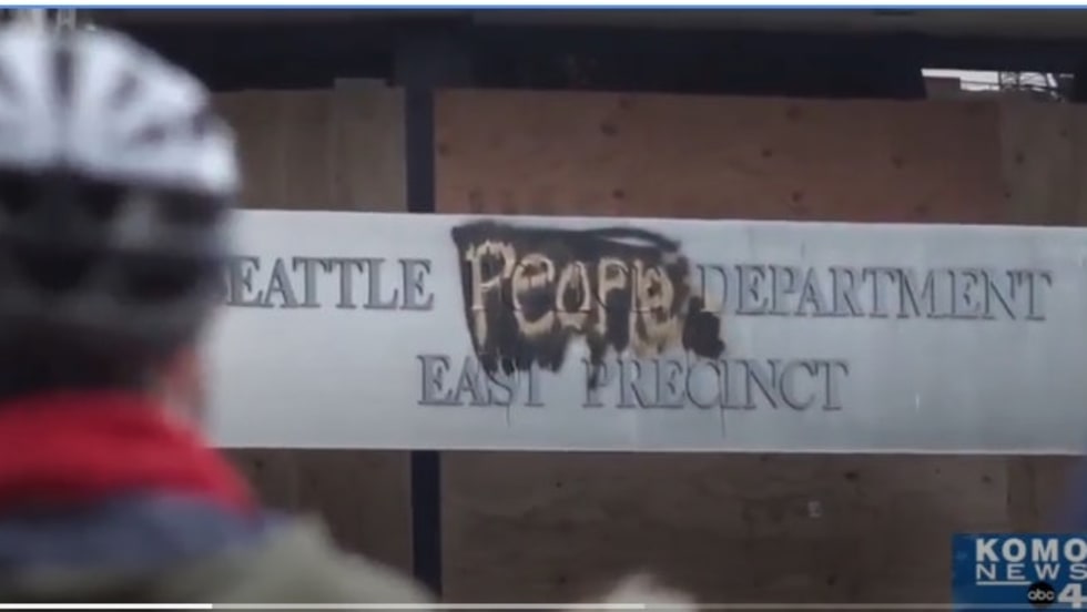 Midway through the evening, protestors hung a banner on the East Precinct that read, “Property of the People.” There were signs and graffiti lining the streets that read "Welcome to Free Capitol Hill" and "Capitol Hill Autonomous Zone."