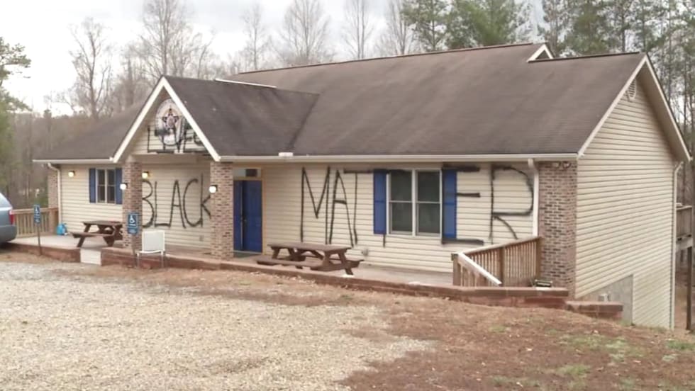 A police spokesperson also says the windows of an FOP van in the parking lot were broken out, and someone cut the wires to surveillance cameras.