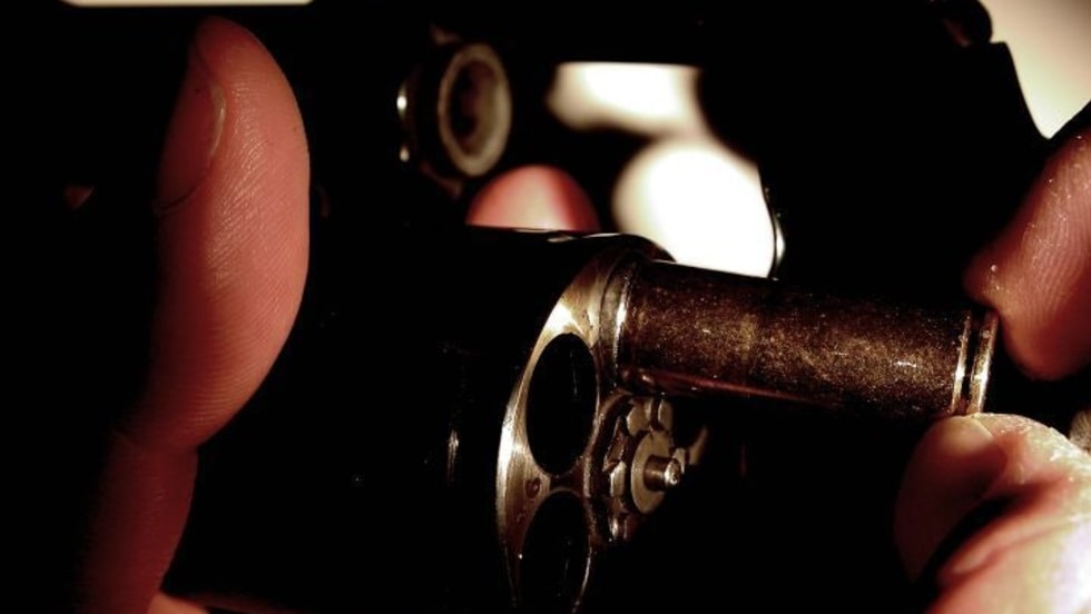 Everything has just gone to hell since the internal affairs investigation. And nothing makes sense anymore. So John takes out his off-duty piece, an old wheel gun. He sits down on the bed, puts one in the cylinder, snaps it shut, and stares down at the blued metal machinery in his hand. The world around him is very quiet as he starts to raise the weapon to his head.