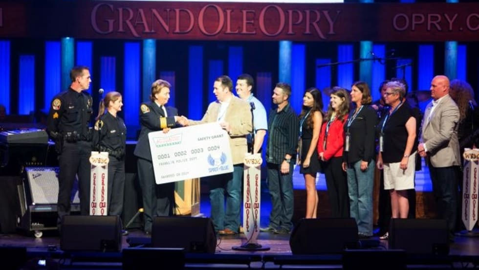 The Spirit of Blue Foundation presented a safety equipment grant to the Franklin (Tenn.) Police Department on the stage of the Grand Ole Opry. Country music star Craig Morgan led the Opry and its guests in honoring law enforcement officers at a recent show. The grant will be used to purchase ballistic helmets for the Franklin SWAT team.