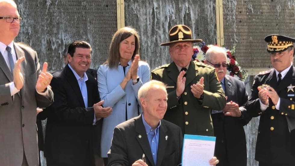 Illinois Governor Bruce Rauner signed a bill on Monday to create a new Illinois Lottery scratch-off game with the proceeds "funding police memorials, support for the families of officers killed or severely injured in the line of duty, and protective vest replacements for officers.