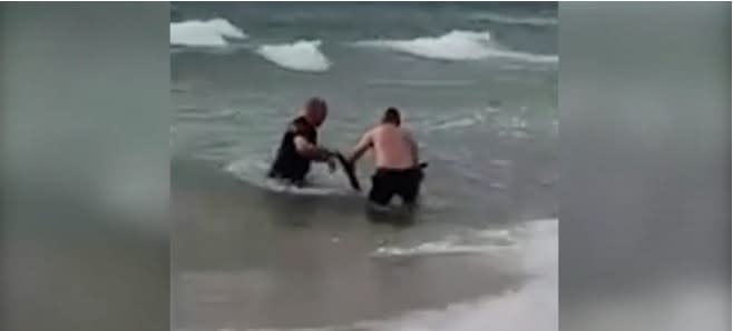 Read More →Two Australian police officers—Sergeants Christopher Russo and Kirby Tonkin—dove into the sea to save an unconscious kangaroo in danger of drowning. The animal in obvious peril, the officers raced into the water to grab him. More Here.