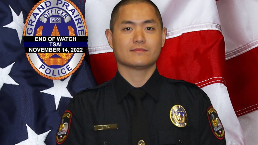 During the pursuit, Tsai lost control of his squad car causing it to strike a light pole. He was transported by Grand Prairie Fire Department medics to Methodist Dallas Medical Center where he succumbed to his injuries, police say.