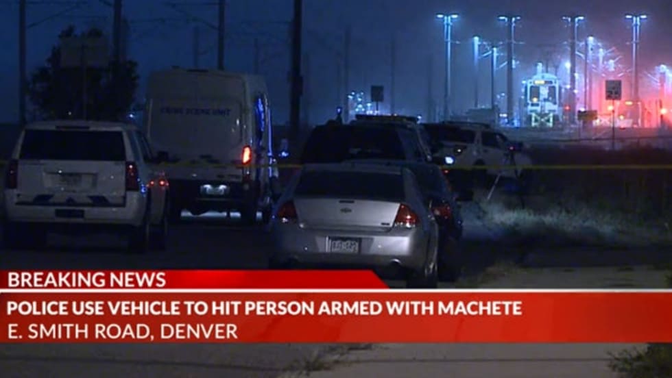 Officers with the Denver Police Department were forced to use at least one patrol vehicle to stop a rampaging assailant armed with a machete on Thursday morning.