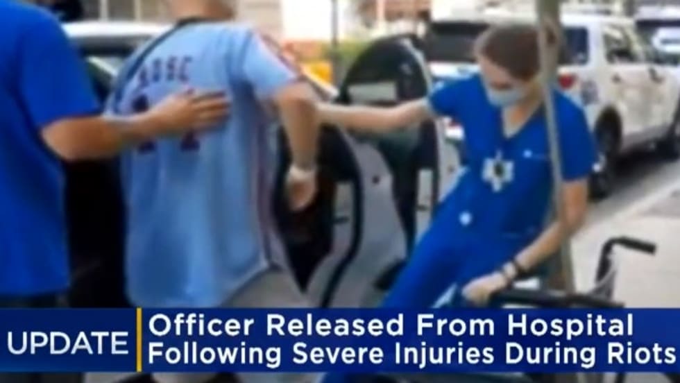 Officer Antonio Nieves left the hospital over the weekend as fellow officers and civilian police supporters gathered on the sidewalk to cheer him on.